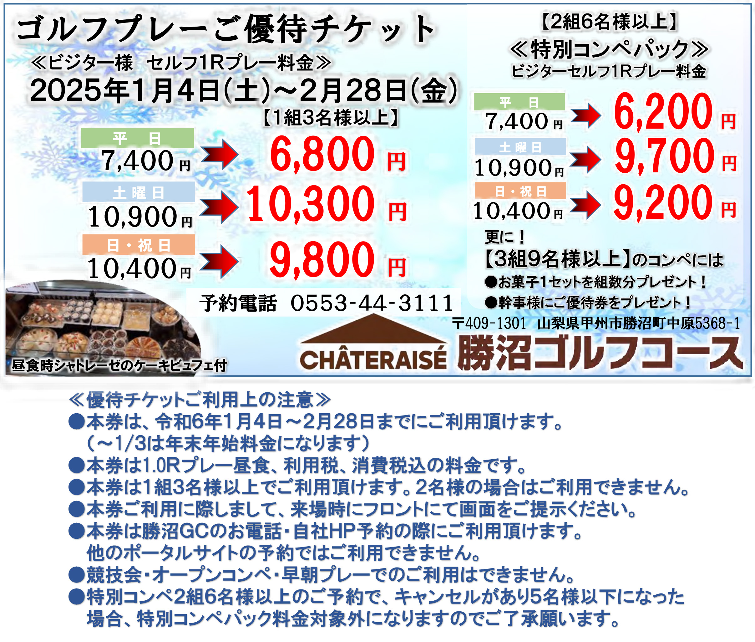 | 4月 | 10日(木) | 勝沼GCシャトレーゼ12周年 プレミアムオープン |